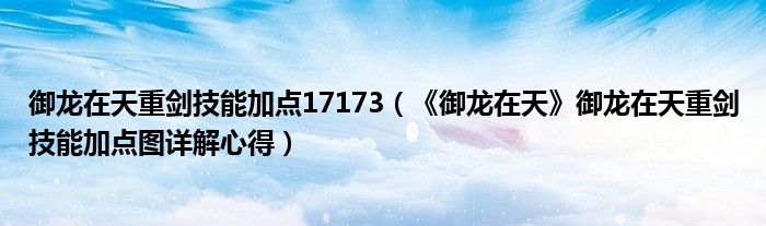 御龙在天重剑技能加点17173(《御龙在天》御龙在天重剑技能加点图详解心得)