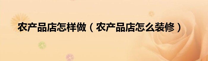 大家好,啊来为大家解答以上的问题。农产品店怎样做,农产品店怎么装修这个很多人还不知道,现在让我们一起来看看吧!