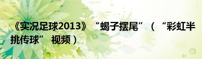 大家好,太太来为大家解答以上问题。《实况足球2013》“蝎子摆尾”,“彩虹半挑传球” 视频很多人还不知道,现在让我们一起来看看吧!