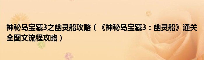 神秘岛宝藏3之幽灵船攻略(《神秘岛宝藏3:幽灵船》通关全图文流程攻略)