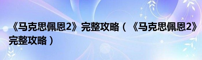 《马克思佩恩2》完整攻略(《马克思佩恩2》完整攻略)