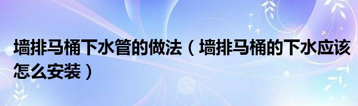 墙排马桶下水管的做法(墙排马桶的下水应该怎么安装)