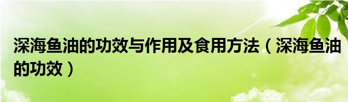 导读 大家好,linda来为大家解答以上的问题。深海鱼油的功效与作用及食用方法,深海鱼油的功效很多人还不知道,现在让我们一起来看看吧!1、深海