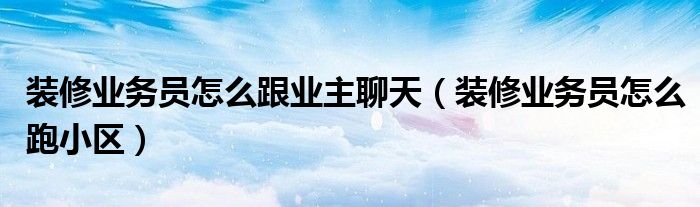 装修业务员怎么跟业主聊天(装修业务员怎么跑小区)