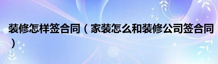 装修时签订装修合同是为了维护彼此的权益,怎么和装修公司签合同?在签合同的过程中,可以好好商量,使自己的利益最大化,实现双方互利共赢。