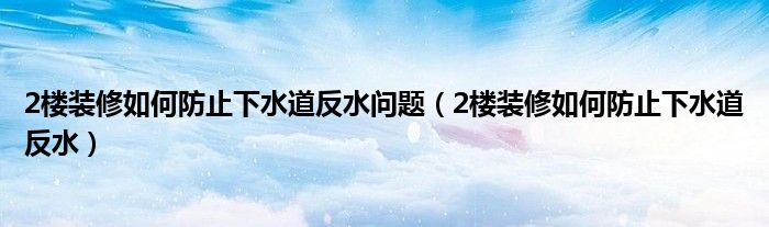 2楼装修如何防止下水道反水问题(2楼装修如何防止下水道反水)