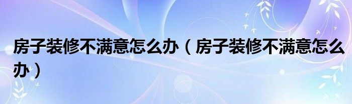 房子装修不满意怎么办(房子装修不满意怎么办)