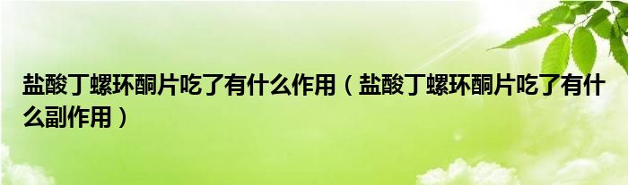 导读 大家好,linda来为大家解答以上的问题。盐酸丁螺环酮片吃了有什么作用,盐酸丁螺环酮片吃了有什么副作用很多人还不知道,现在让我们一起来