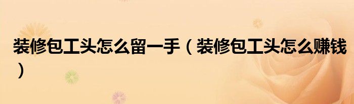 装修包工头怎么留一手(装修包工头怎么赚钱)