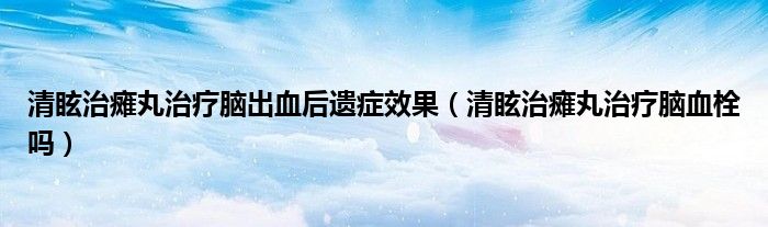 导读 大家好,linda来为大家解答以上的问题。清眩治瘫丸治疗脑出血后遗症效果,清眩治瘫丸治疗脑血栓吗很多人还不知道,现在让我们一起来看看吧