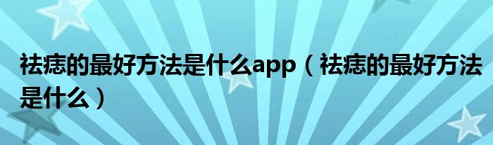 祛痣的最好方法是什么app(祛痣的最好方法是什么)