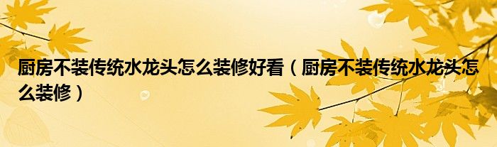 厨房不装传统水龙头可以这样装修:1、安装冷热水混合水龙头,满足不同季节的用水要求;2、安装手持花洒式水龙头,方便各种角度的使用;3、安装净水一体化水龙头,保证自来水的水质安全;4、安装非触摸式水龙头,保证了水龙头的清洁度;5、安装点触式水龙头,操控更加方便。
