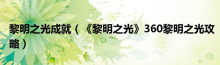 黎明之光成就(《黎明之光》360黎明之光攻略)