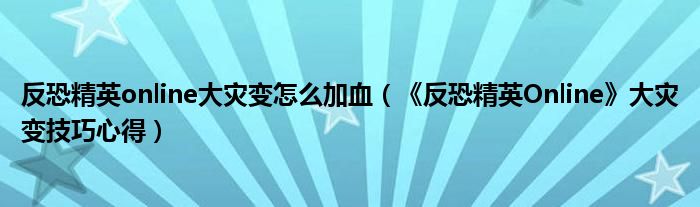 导读 大家好,太太来为大家解答以上问题。反恐精英online大灾变怎么加血,《反恐精英Online》大灾变技巧心得很多人还不知道,现在让我们一起来看