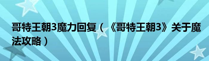 哥特王朝3魔力回复(《哥特王朝3》关于魔法攻略)