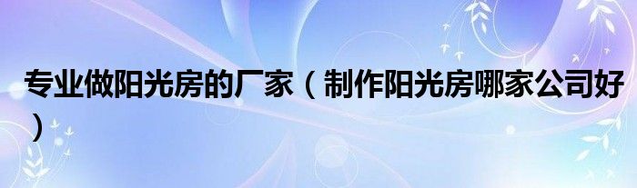 专业做阳光房的厂家(制作阳光房哪家公司好)