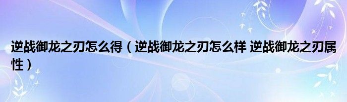 逆战御龙之刃怎么得(逆战御龙之刃怎么样 逆战御龙之刃属性)