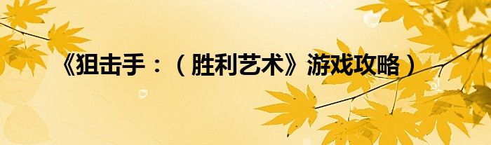 《狙击手:(胜利艺术》游戏攻略)