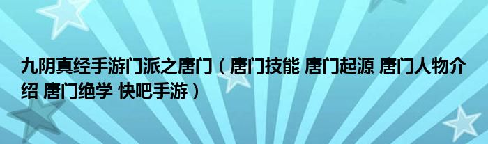 1、九阴真经手游唐门怎么样?九阴真经手游唐门有什么技能?九阴真经手游唐门有哪些人物?接下来小编将为您详细介绍游戏中的门派唐门,希望能对您有所帮助。