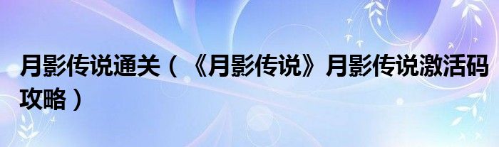 月影传说通关(《月影传说》月影传说激活码攻略)