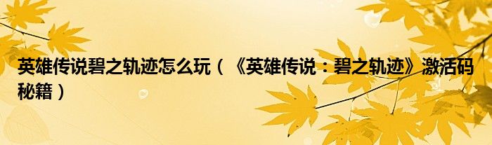 英雄传说碧之轨迹怎么玩(《英雄传说:碧之轨迹》激活码秘籍)