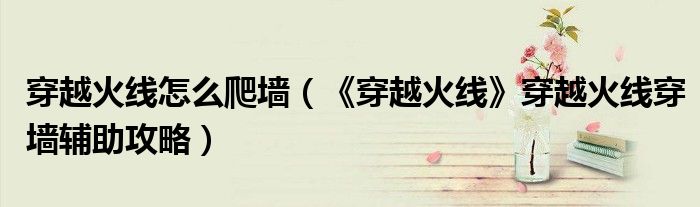 穿越火线怎么爬墙(《穿越火线》穿越火线穿墙辅助攻略)
