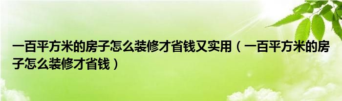 一百平方米的房子怎么装修才省钱又实用(一百平方米的房子怎么装修才省钱)