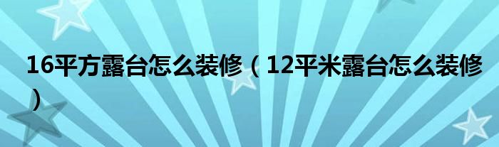 大家好,啊来为大家解答以上的问题。16平方露台怎么装修,12平米露台怎么装修这个很多人还不知道,现在让我们一起来看看吧!