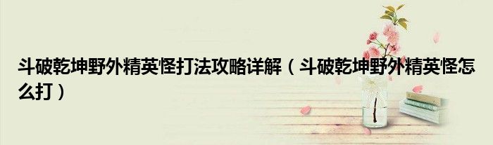 斗破乾坤野外精英怪打法攻略详解(斗破乾坤野外精英怪怎么打)