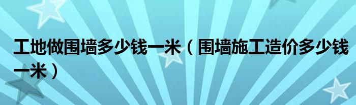 工地做围墙多少钱一米(围墙施工造价多少钱一米)
