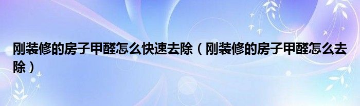 刚装修的房子甲醛怎么快速去除(刚装修的房子甲醛怎么去除)