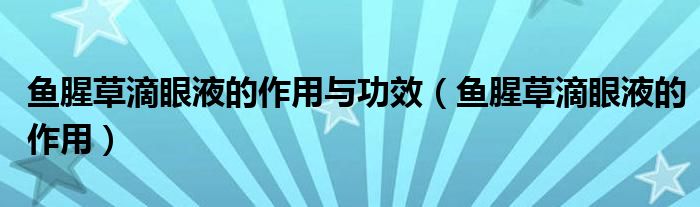 鱼腥草滴眼液的作用与功效(鱼腥草滴眼液的作用)