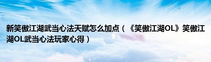 新笑傲江湖武当心法天赋怎么加点(《笑傲江湖OL》笑傲江湖OL武当心法玩家心得)