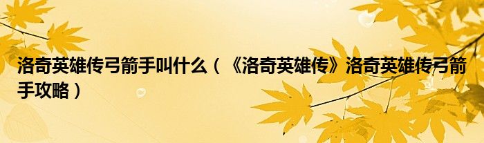 洛奇英雄传弓箭手叫什么(《洛奇英雄传》洛奇英雄传弓箭手攻略)