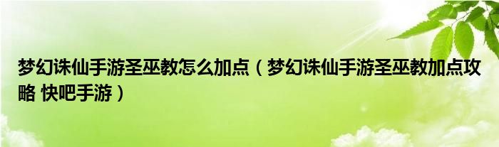 梦幻诛仙手游圣巫教怎么加点(梦幻诛仙手游圣巫教加点攻略 快吧手游)