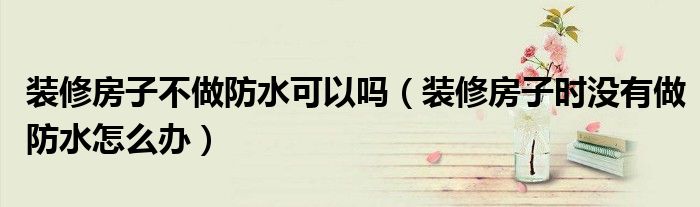 装修房子不做防水可以吗(装修房子时没有做防水怎么办)