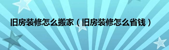 旧房装修怎么搬家(旧房装修怎么省钱)