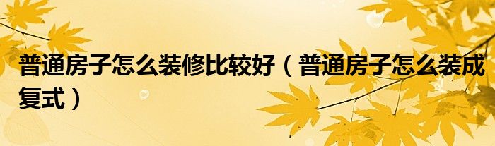 普通房子怎么装修比较好(普通房子怎么装成复式)