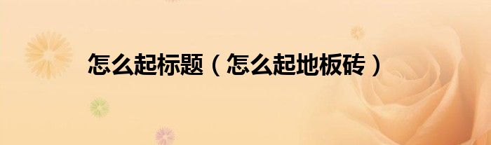 大家好,啊来为大家解答以上的问题。怎么起标题,怎么起地板砖这个很多人还不知道,现在让我们一起来看看吧!