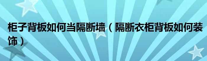 柜子背板如何当隔断墙(隔断衣柜背板如何装饰)