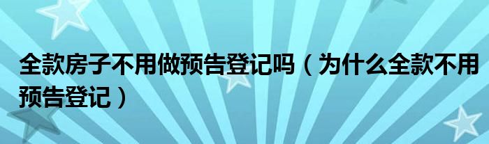 全款房子不用做预告登记吗(为什么全款不用预告登记)