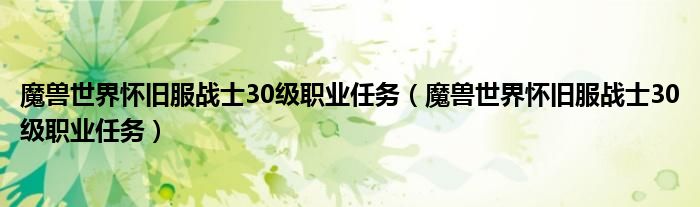 魔兽世界怀旧服战士30级职业任务(魔兽世界怀旧服战士30级职业任务)