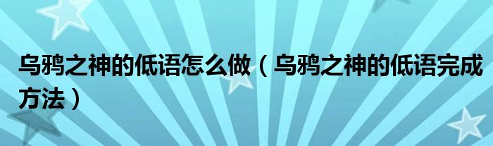 乌鸦之神的低语怎么做(乌鸦之神的低语完成方法)