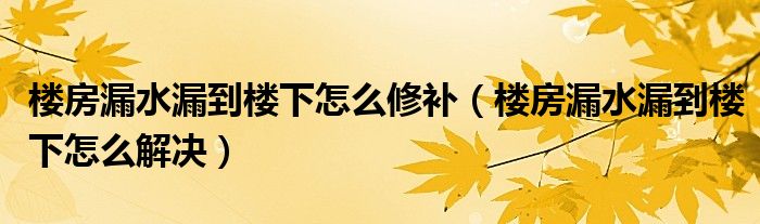 楼房漏水漏到楼下怎么修补(楼房漏水漏到楼下怎么解决)