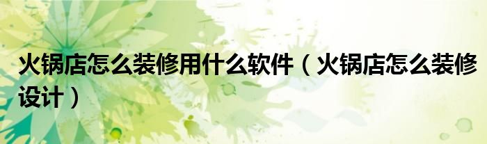 火锅店怎么装修用什么软件(火锅店怎么装修设计)