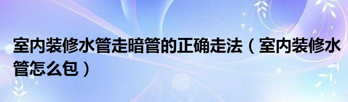 室内装修水管走暗管的正确走法(室内装修水管怎么包)