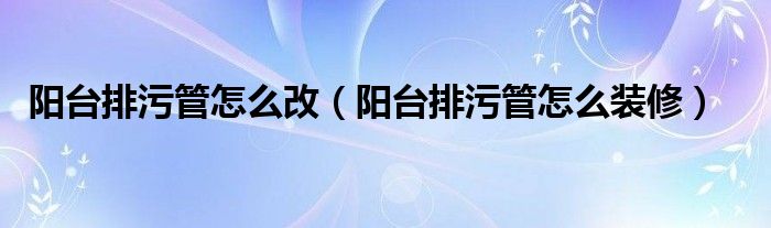 大家好,啊来为大家解答以上的问题。阳台排污管怎么改,阳台排污管怎么装修这个很多人还不知道,现在让我们一起来看看吧!