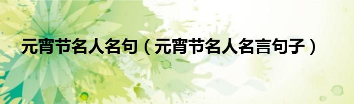 导读 大家好,小飞来为大家解答以上的问题。元宵节名人名句,元宵节名人名言句子这个很多人还不知道,现在让我们一起来看看吧!1、关于元宵节的名