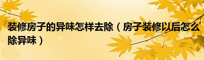装修房子的异味怎样去除(房子装修以后怎么除异味)