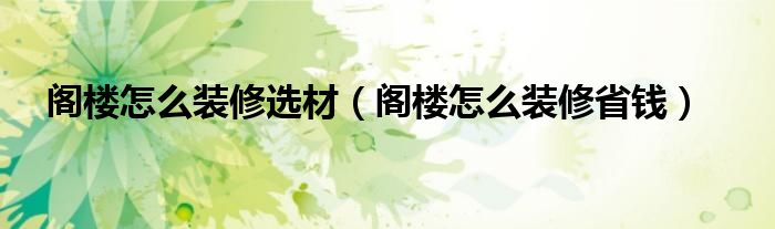 阁楼怎么装修选材(阁楼怎么装修省钱)